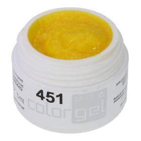 Trouvez votre couleur parfaite avec le #451 Premium-GLITTER Gel Couleur 5ml Jaune Lumineux avec Paillettes Irisées